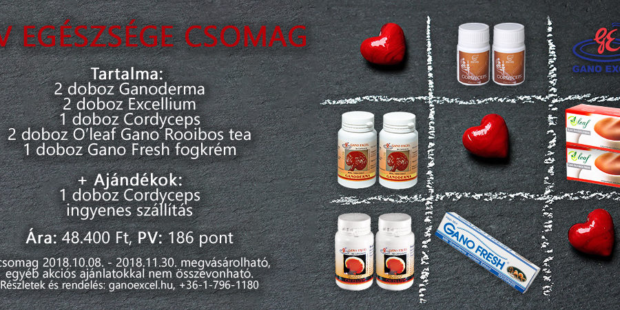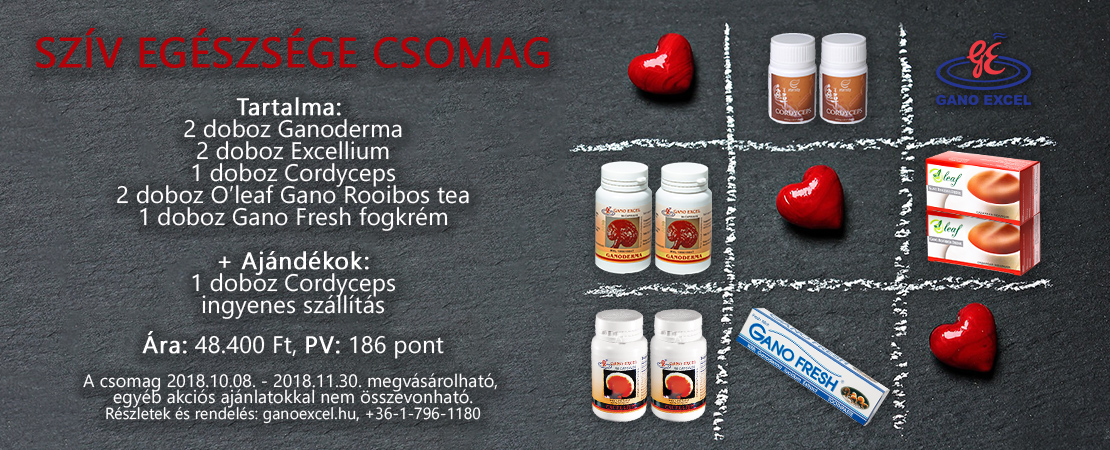 A Gano Excel 2018. október 8-tól új időszakos csomagajánlatokat indít. A kétféle csomag előreláthatólag november 30-ig lesz rendelhető, összeállításukat a szív napja és az idősek világnapja inspirálta, amelyekben hírleveleinkben is olvashattál (kattints ide, ha nem kapod meg értesítőinket, de szeretnéd).