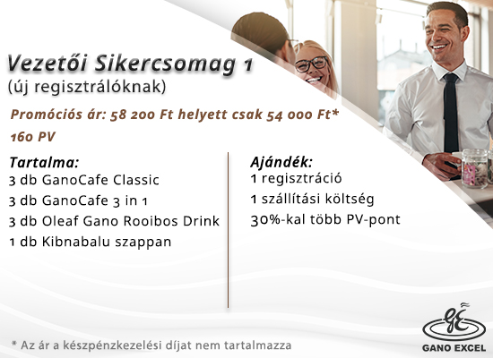 Amennyiben még csak most regisztrálnál a Gano Excel törzsvásárlói rendszerébe, kötelező az alábbi termékek közül az egyiket megvásárolnod: Indulócsomag / Tagsági díj, Vezetői Sikercsomag 1, Vezetői Sikercsomag 2.